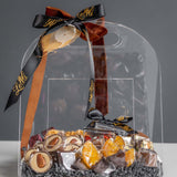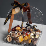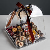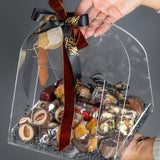 Présenté dans un Sac fourre-tout en acrylique transparent de qualité supérieure Doté d'une poignée, ce panier-cadeau revisite le traditionnel panier garni avec modernité. Sa transparence permet d'admirer chaque détail gourmand, créant un effet « wahou » immédiat.