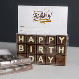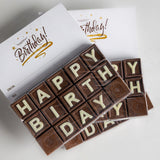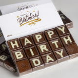 Barre de messages « Joyeux anniversaire » Voici la quintessence des vœux gourmands. Confectionnée à partir de notre chocolat au lait onctueux de qualité supérieure, cette tablette arbore le message « JOYEUX ANNIVERSAIRE » écrit en lettres de chocolat blanc contrastantes.